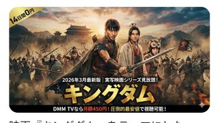 映画『キングダム』の動画配信を無料視聴する方法を解説!DMM TVなら14日間無料で実写映画シリーズが見放題。2026年3月31日までの期間限定で、月額450円の最安キャンペーンも実施中です。山﨑賢人ら豪華キャストの熱き戦いをお得に楽しみましょう。