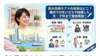 NHK「あさイチ」鈴木奈穂子アナの実家はどこ?地元・横浜での生い立ちや、法政女子高での部活時代を徹底調査。大学時代に出会ったTBSディレクターの夫との結婚や、現在の子供との暮らしまで、公私ともに充実する彼女のルーツと家族構成に迫ります。