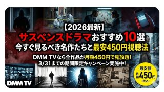 【2026年最新】おすすめサスペンスドラマ10選の配信状況を解説。DMM TVなら14日間無料で視聴可能!さらに3月31日までの期間限定で、DMMプレミアム等の全プランがキャンペーン価格の月額450円で見放題。名作サスペンスを最安で楽しむ方法をご紹介。