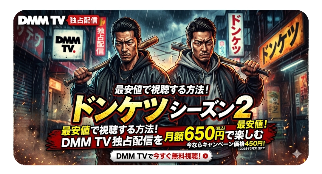 いかがでしたでしょうか。『ドンケツ シーズン2』を視聴するには、DMM TV(DMMプレミアム)一択です。