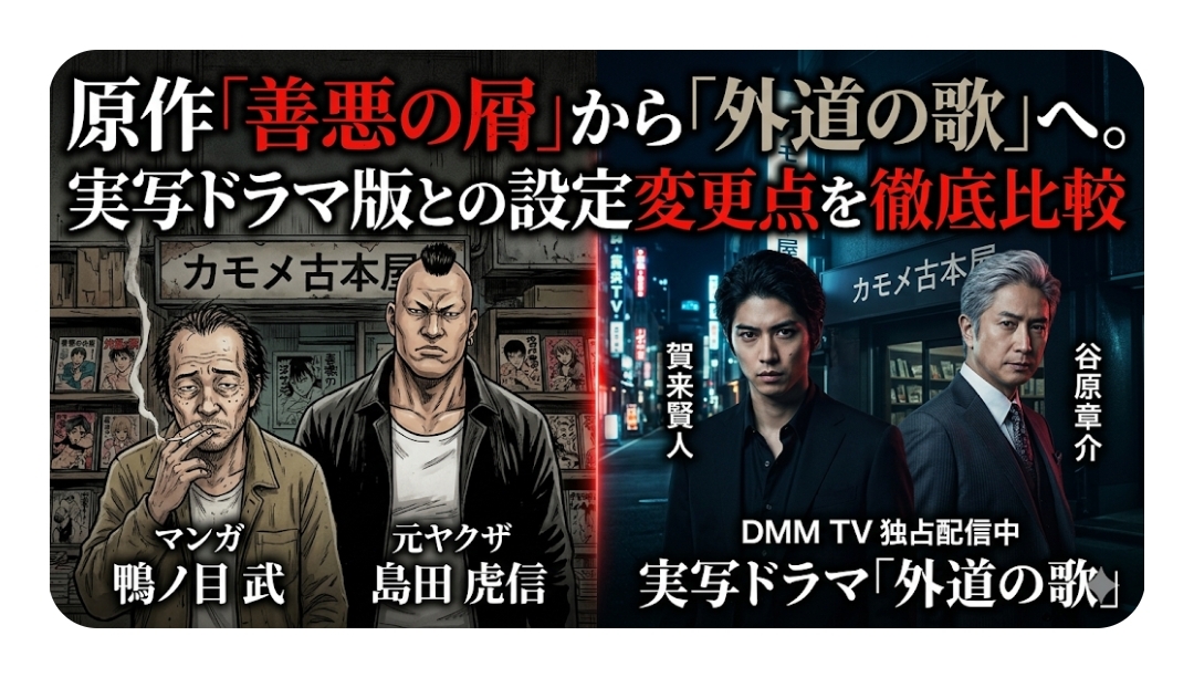 実写ドラマ版『外道の歌』と原作漫画の主な設定変更点比較