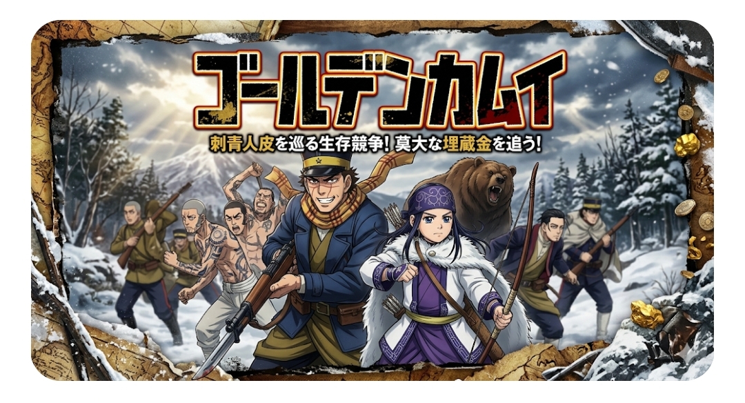厳しい北の大地で、アイヌの少女・アシㇼパと出会った杉元は、彼女と共に金塊を巡る三つ巴の生存競争に身を投じる。圧倒的なスケール感で描かれる、歴史・グルメ・狩猟・ミステリーが融合した究極のエンターテインメント作品です。