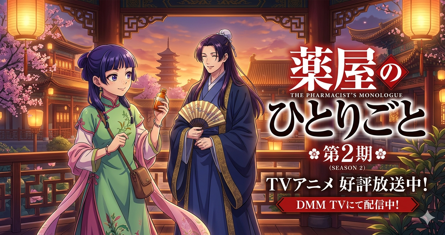 猫猫(マオマオ)と壬氏(ジンシ)の物語が再び動き出す!待望の第2期『薬屋のひとりごと』を、どこよりもお得に、そして高画質で楽しみたいと考えていませんか?