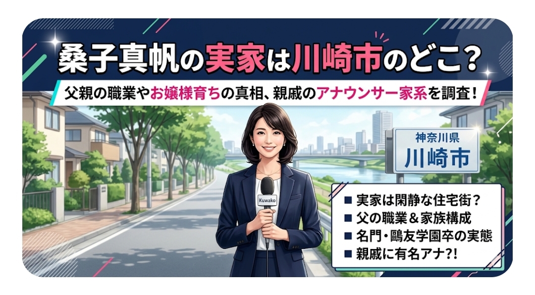公式プロフィールによると、桑子真帆アナの出身地は神奈川県川崎市です。詳細な番地まではプライバシー保護のため公表されていませんが、彼女の経歴からいくつかのヒントが見えてきます。