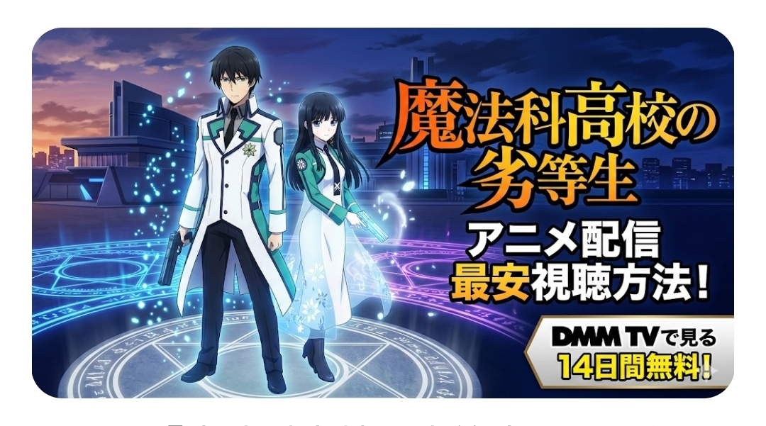 『魔法科高校の劣等生』のアニメ配信を無料で見る方法は? DMM TVなら限定450円で最安視聴!