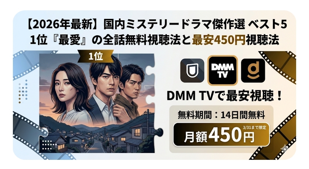 「本当に面白い国内ミステリードラマはどれ?」「1位の作品を一番安くお得に見る方法は?」と探している方向けに、最新の配信状況をまとめました。