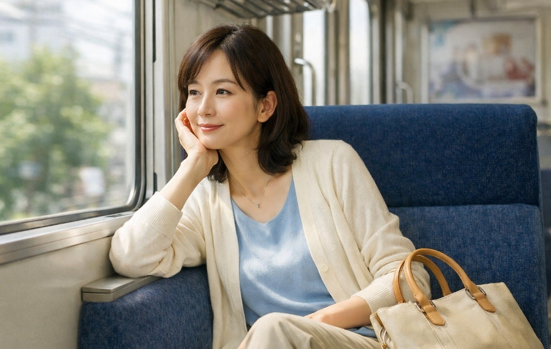 多くの芸能人がプライベートでの外出時に帽子、サングラス、マスクなどで顔を隠す中、西田尚美さんが披露したのは「完全な素顔」に近い状態での電車移動でした。