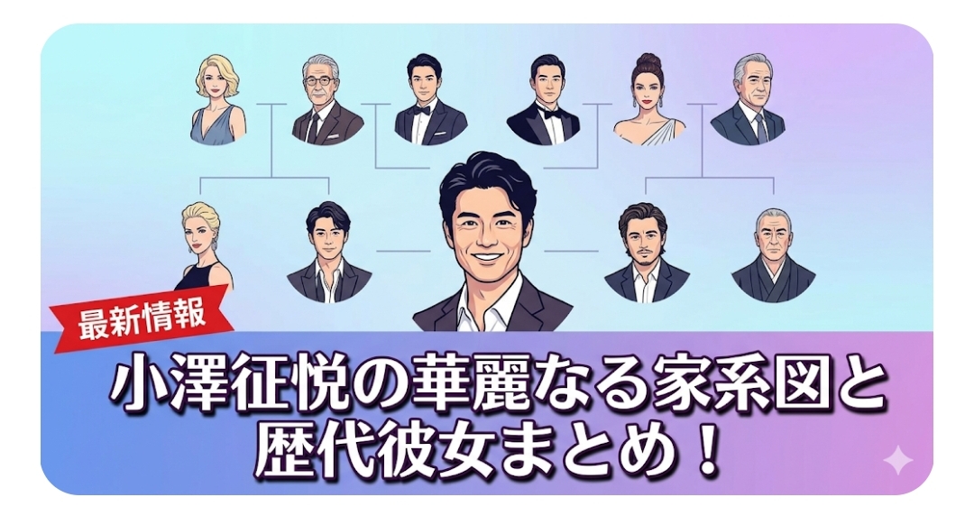 小澤征悦さんの家系は、音楽・芸術・文学の各界でトップを極めた人物が揃う、正真正銘のセレブ一族です。まずはその圧倒的な相関図を見ていきましょう。