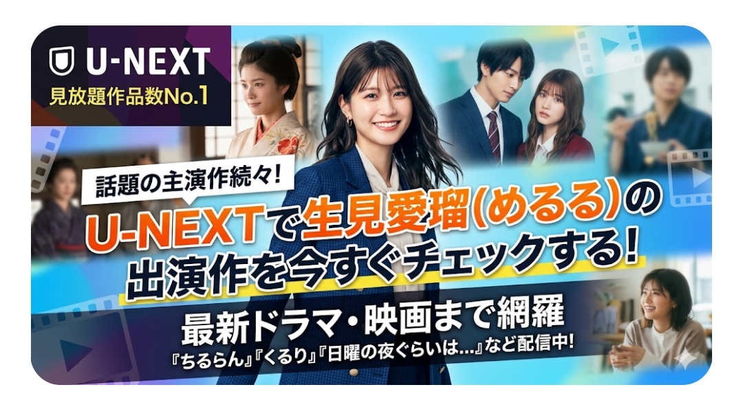 生見愛瑠(めるる)さんの女優としての快進撃は、2026年も止まりません。モデルからスタートし、今やその演技力で日本中を魅了する彼女の作品を、一気見できるプラットフォームはU-NEXTだけです。